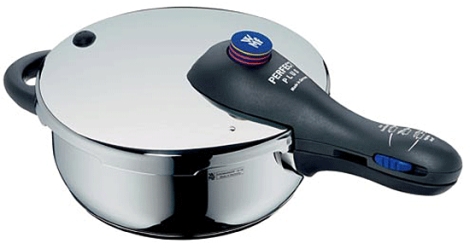 Acest vas de gatit sub presiune, marca Perfect Plus este destul de scump, dar el reduce timpul de gatit cu 70%. In plus, toata savoarea mancarii se pastreaza fara probleme.
