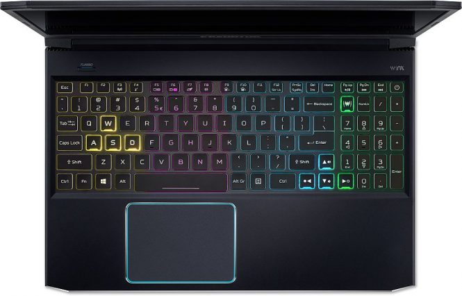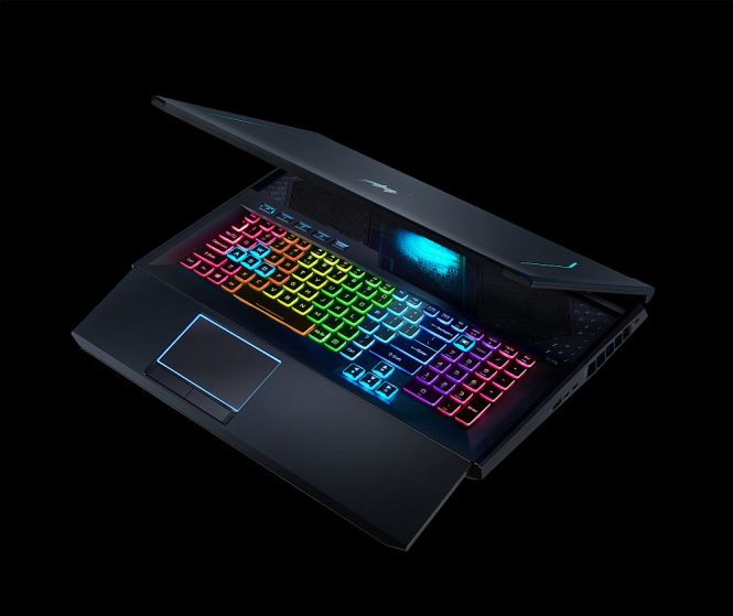 Carcasa metalică vine cu accente albastre elegante, iar tastatura este iluminată. Avem şi o ramă îngustă în jurul afişajului şi o tastatură regândită cu font Predator. Aici avem un ecran Full HD IPS de 15.6 inch sau 17.3 inch, cu o ramă foarte îngustă. Oferă un timp de răspuns de 3 ms şi laptopul aduce un sistem de răcire avansat şi eficient.