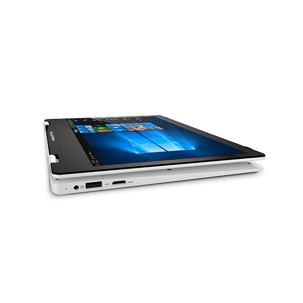 Acest laptop vine cu procesor Intel Celeron N3350 dual core, care ajunge până la 2.3 GHz cu burst. Trebuie subliniat că puteţi transforma terminalul într-un soi de tabletă prin rotirea ecranului, care apropo e tactil. Avem şi o baterie de 3500 mAh la interior, cameră frontală de 2 MP, 2 porturi USB 2.0 şi mini HDMI. Produsul rulează Windows 10 Home şi porneşte de la 1499 lei în varianta standard.