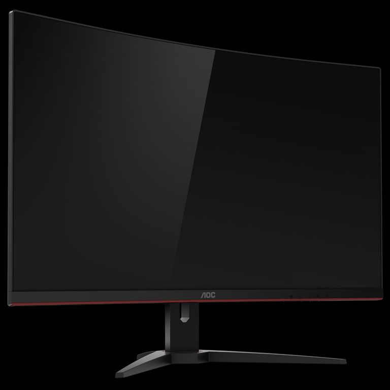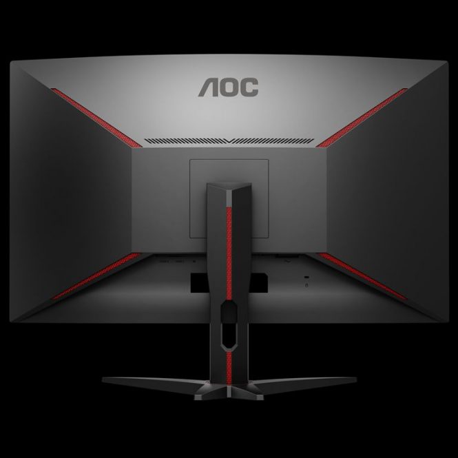 Acest monitor se prezintă cu un design curbat, cu unghi de curbură de 1800R. AOC CQ32G1 are un panou VGA de 31.5 inch şi vine cu rame foarte înguste, de doar 2 mm. Designul este unul edge to edge, cu margini foarte subţiri, pentru extra imersivitate. Astfel puteţi realiza şi o configuraţie multi screen fără probleme. Suportul în formă de „V” este realizat dintr-un material texturat cu accente de roşu şi negru.