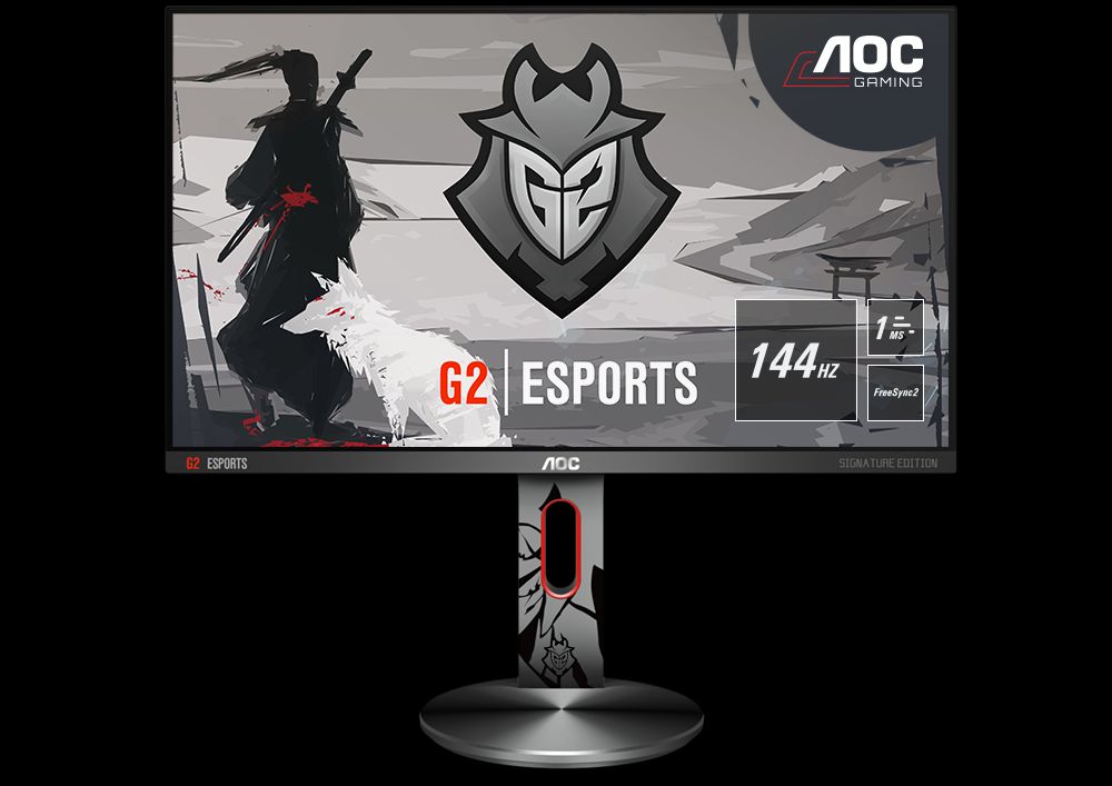 Echipa G2 Esports a fost fondată în Berlin în 2013 de către jucătorul profesionist Carlos „ocelote” Rodriguez. Grupul a devenit campion al circuitului european în cadrul unei numeroase evenimente eSports. Noul monitor G2590PX/G2 se bazează pe linia de monitoare de gaming AOC G90 Series şi vine cu un panou TN, cu abordare edge to edge pe 3 dintre cele 4 laturi.