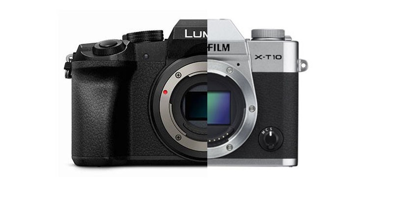 Panasonic G7 adopta un design pătrăţos, cu şuruburi la vedere şi o abordare mai „industrială” decât suntem obişnuiţi, ceea ce putem spune şi despre nou venitul Fujifilm. Diferenţa e că G7 e capabil de captură foto şi video 4K, în vreme ce X-T10 se opreşte la Full HD. Modelul Panasonic aduce un senzor de 16 MP (Digital Live MOS) şi se bazează pe un engine Venus.
