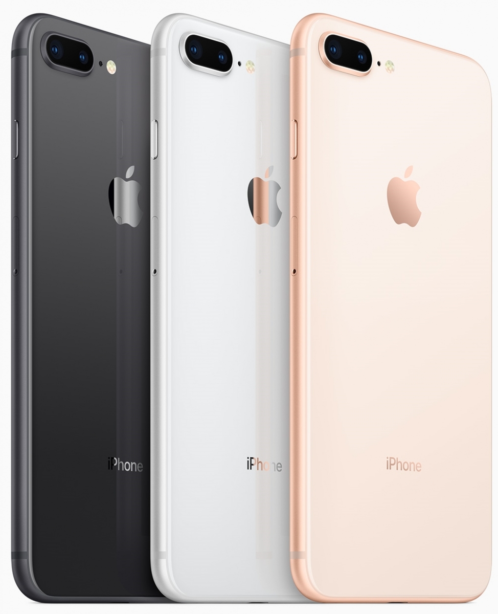 În spate se află o cameră de 12 megapixeli, cu stabilizare optică, dar senzorul este mai mare şi mai rapid. De această dată vom filma în 4K la 60 FPS, dar avem şi captură slow motion Full HD la 240 FPS. Au fost subliniate şi funcţiile augmented reality ale camerei. iPhone 8 şi iPhone 8 Plus suportă încărcare wireless şi mai aduc şi suport LTE Advanced, Bluetooth 5.0 şi difuzoare stereo. Corpurile acestor terminale rezistă la apă şi praf fără probleme.