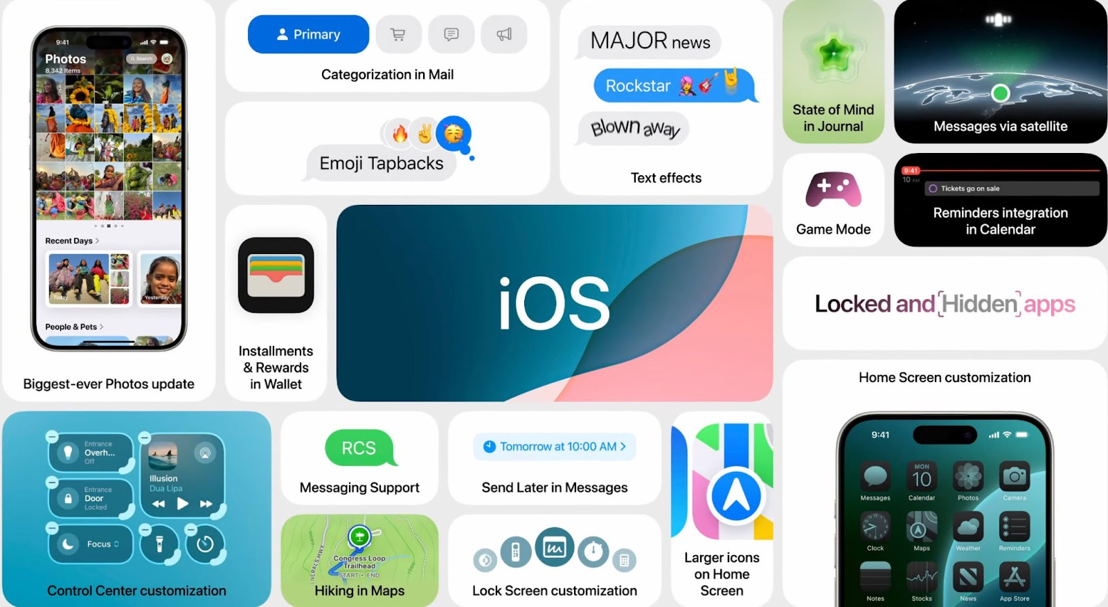 Mesajele primesc „tapbacks”, aşa că poţi să le răspunzi cu un emoji sau sticker, în loc de cuvânt. Poţi programa mesaje, dar şi să le formatezi, cu bold, underline, Italic, dar şi efecte ca tremurat şi ţopăit. În sfârşit vine şi RCS-ul de pe Android. Va exista şi mesagerie prin satelit pe două căi, cu criptare end to end.