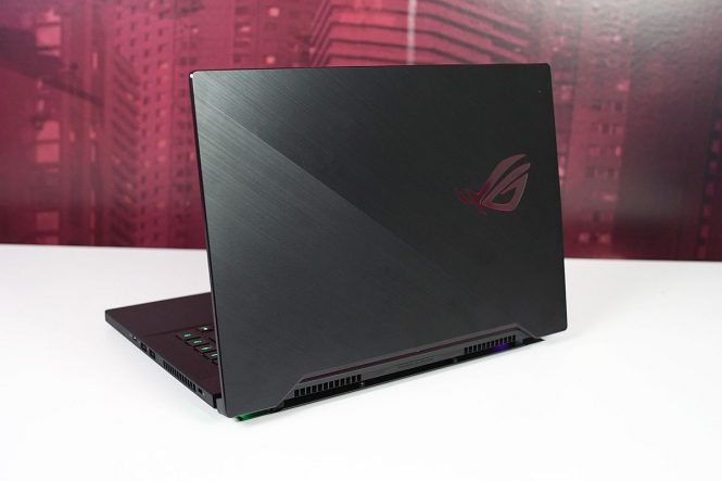 Suportul de mâini are ranforsări în formă de fagure, care fac carcasa mai rigidă, în punctele unde este nevoie de rezistenţă mai mare. Implică un aliaj de magneziu, care poate rezista torsionărilor. ASUS ROG Zephyrus S GX502 măsoară 18.9 mm în grosime şi cântăreşte 2 kilograme, ceea ce e puţin pentru un laptop de gaming. Are spaţiu pentru 2 SSD-uri la interior, ce pot fi configurate în RAID 0.