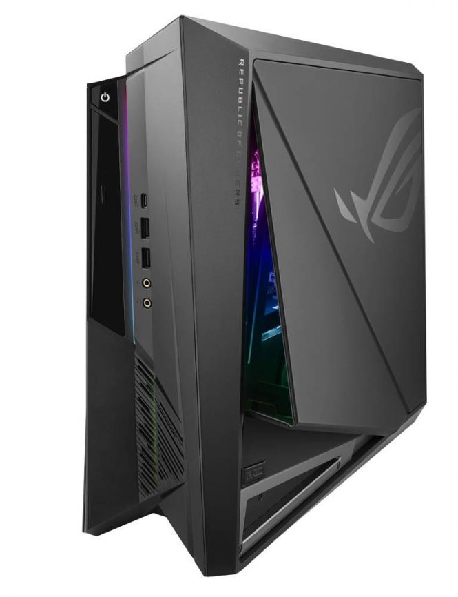 Există şi un bay SSD hot swap de 2.5 inch, care permite înlocuirea unui drive SSD în câteva secunde. ASUS oferă aici iluminare Aura Sync, cu efecte luminoase care se sincronizează cu căşti de gaming, tastaturi, mouşi şi monitoare. De sonorizare se ocupă un DAC ESS Sabre şi un amplificator, care oferă sunet 32 bit. Produsul va sosi în trimestrul 2, în variante Core i5 şi Core i7, cu Windows 10 şi drive DVD.