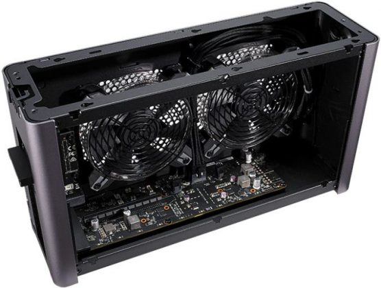 Noua soluție eGFX este compatibilă cu majoritatea plăcilor grafice high-end de la AMD și NVIDIA, oferind o sursă de 330W. Observăm că această carcasă are un look minimalist și suntem informați că la interior se află două ventilatoare menite să răcească rapid setup-ul în timpul sesiunilor de gaming.