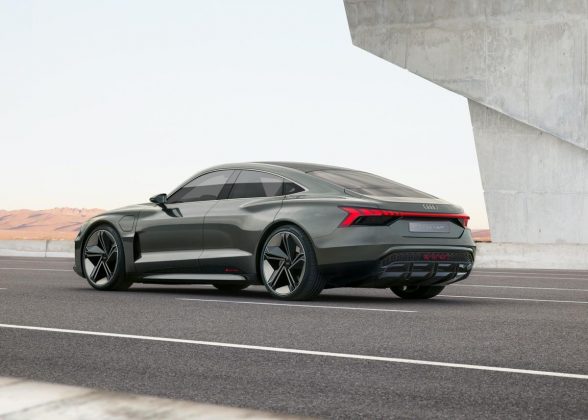 Ce e drept grila aceea nu are vreun scop practic, neexistând un sistem de circulaţie a aerului acolo. Identitatea sportivă a maşinii este indicată de către porţiunile sale „musculare” din zona oglinzilor şi a spatelui. E bizar să vedem şi mecanismul de circulaţie a aerului din zona spate-jos, care indică faptul că maşina e gata de o cursă liniuţă. Ar genera 590 de PS, cu 50% mai mult decât SUV-ul e-tron.