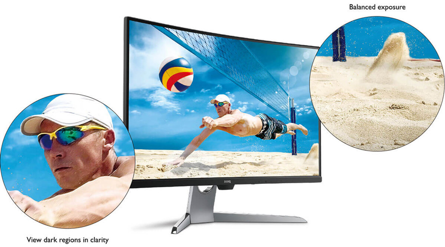 Acest ecran curbat de 32 inch oferă o rezoluţie 2K la 144Hz. Suportă HDR şi tehnologia BenQ Brightness Intelligence Plus (BI+), care protejează vederea în sesiunile prelungite de gaming sau la filme. EX3203R oferă un contrast de calitate şi un negru adânc, dar şi detalii mai clare în zonele întunecate, funcţie utilă pentru shootere în special, cu zonele întunecate de unde pot veni inamicii.
