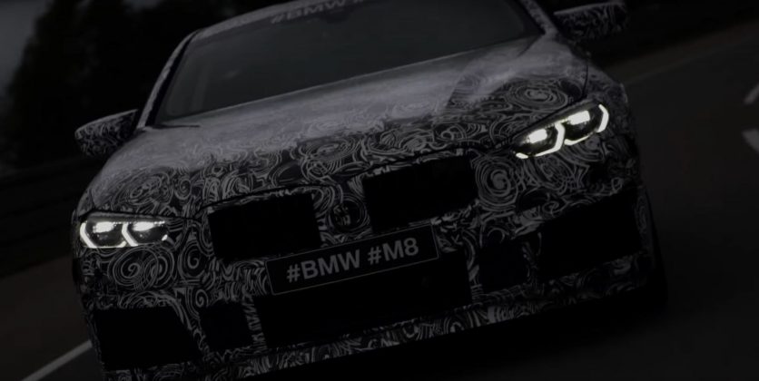 BMW M8 a fost doar un zvon timp de multe luni, dar acum se concretizează sub forma unui prototip cu jante de mari dimensiuni şi aripi arcuite. Fotografiile sunt întunecate şi păstrează misterul, fiind extrase din materialul teaser pentru acest nou BMW, cel de 20 de secunde de mai jos.