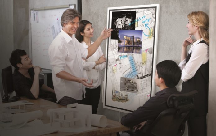 Samsung tocmai a anunţat la CES 2018 un nou PC cu dimensiuni uriaşe, cunoscut sub numele de Samsung Flip şi gândit ca un rival pentru Surface Hub. Numele complet al produsului cel nou este Samsung Flip WM55H şi se bazează pe Tizen OS.