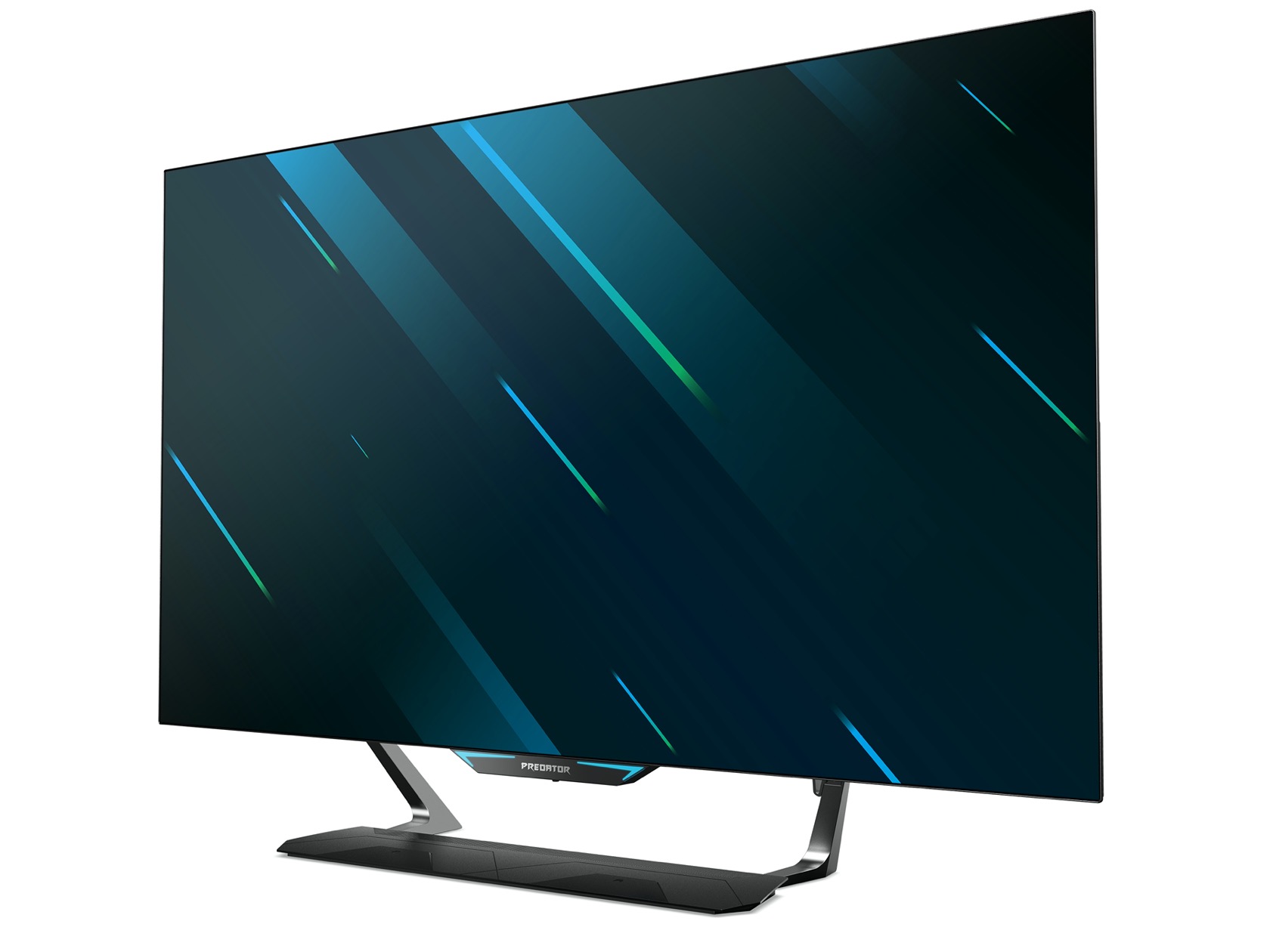Produsul vedetă din noua gamă chiar arată ca un televizor. Este Acer Predator CG552K şi vine cu diagonală de 55 inch. Aici trecem la un OLED 4K cu 98.5% gamă de culori DCI-P3, dar şi până la 400 de nits de luminozitate. Suportă refresh rate variabil prin HDMI şi dispune şi de Adaptive Sync şi NDIVIA G-Sync. Refresh rate-ul ajunge la 120 Hz. Luminozitatea se controlează automat folosind un sistem de lumină ambientală, în funcţie de condiţiile din cameră.