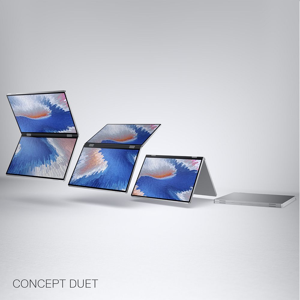Dell şi Alienware au mai prezentat şi Concept Duet, un terminal cu două ecrane rotative, sau mai bine zis o clonă de Surface Duo, dar şi Concept Ori. Acesta este un soi de pliabil inspirat de Nintendo 3DS. Greu de crezut că am ajuns la nisarea nişei deja: pliabile speciale pentru gaming, dar în vreo 3 ani aş vedea şi aşa ceva pe piaţă.