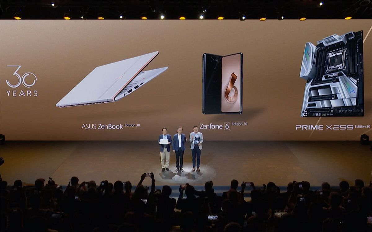 Alte dotări includ stocare SSD PCie şi WiFi Gigabit. ASUS a mai prezentat şi o placă de bază aniversară, Prime X299 Edition 30, un tribut pentru prima placă de bază a companiei din 1990. Vine cu sloturi duale M.2, două porturi Thunderbolt 3, Ethernet 5G, WiFi 6 şi OLED-uri Live Dash. Şi telefonul ZenFone 6 a primit o ediţie aniversară, cu finisaj cu cercuri concentrice, 12 GB RAM, 512 GB stocare şi procesor Snapdragon 855. Se păstrează camera duală flip.