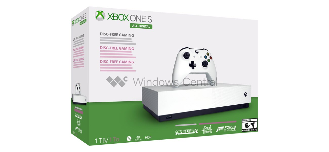 Consola nu va avea unitate optică și potrivit unor detalii proaspăt apărute în online, aceasta va debuta oficial pe data de 7 mai. Numele oficial al consolei este Xbox One S All-Digital Edition, încă o confirmare a faptului că nu va avea drive-ul Blu-ray tipic pe care îl regăsim pe celelalte versiuni.