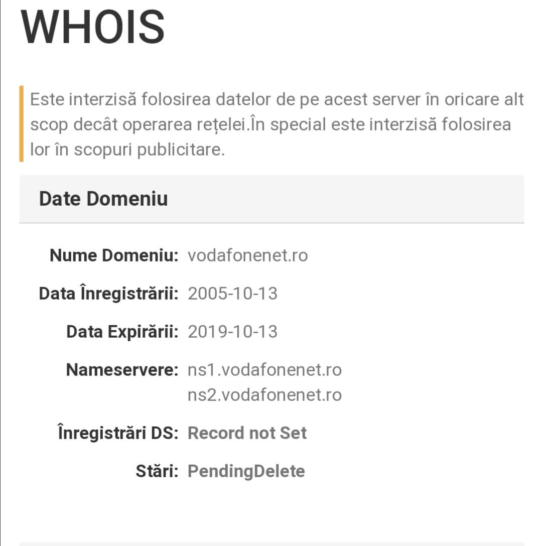 După cum a semnalat Cristi Dorombach pe Facebook ieri la prânz, a expirat domeniul vodafonenet.ro fix pe 13 octombrie, un 13 cu ghinion aş zice. Starea site-ului era „Pending Delete” ieri la prânz, pentru că „băiatul de la IT” a uitat să prelungească rezervarea. Ca atare multă lume s-a trezit cu site-ul Vodafone picat ieri după amiază, fără să ştie de ce.