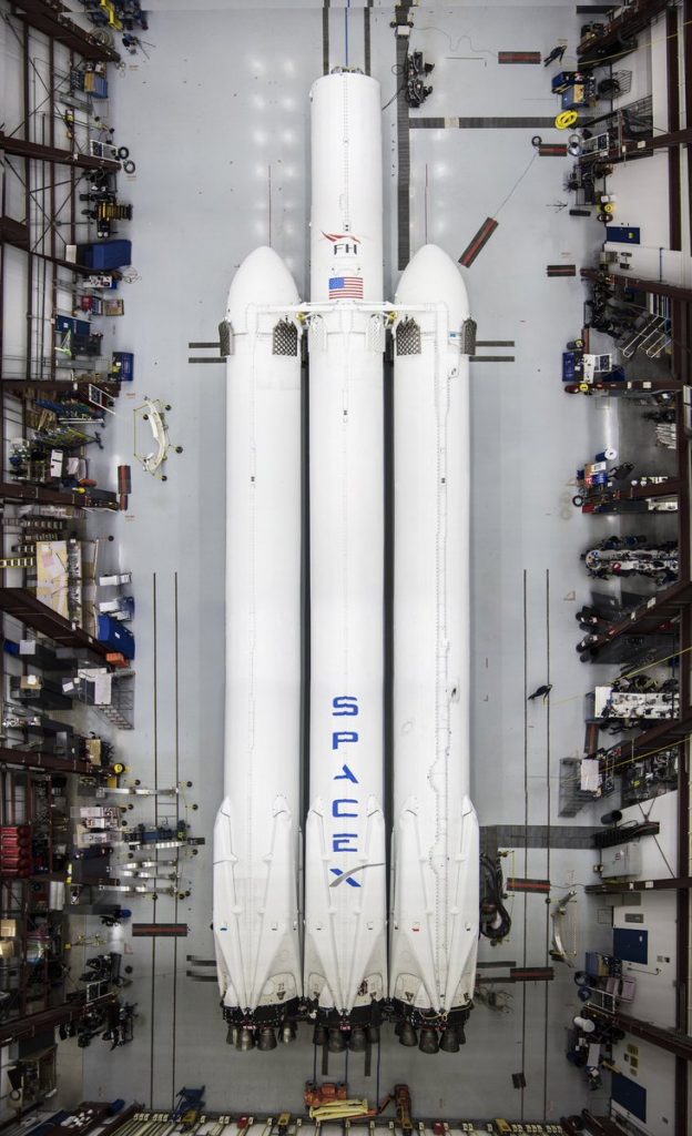 Celebrul CEO Tesla şi SpaceX a postat pe Twitter fotografiile, care arată uimitor. Giganţii din metal ar trebui să decoleze în ianuarie şi acesta este apogeul proiectului SpaceX din ultimii ani. Judecând după aceste imagini, cele mai mari lipsuri ale navetelor ar fi încărcătura şi nasul conic din zona superioară. Falcon Heavy include 3 rachete Falcon 9 alipite una de alta şi toate reutilizabile.
