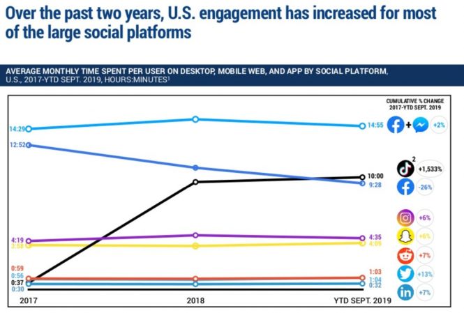 De la 14 ore pe lună în 2017 s-a ajuns acum la doar 9 ore. SnapChat şi Instagram au crescut totuşi, furând orele de la FB. Americanii ar petrece în medie timp online pe 5.8 reţele de socializare şi până în 2023 ar putea ajunge la 10 reţele. Facebook s-a orientat bine prin achiziţionarea Instagram, am putea spune. CEO-ul Activate a remarcat că utilizatorii Facebook par să prefere comunităţi mai mici şi mai nişate.