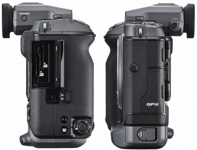 Şi corpul acestui aparat este foarte rezistent, cu 95 de puncte de sigilare contra vremii. Rezistă la apă şi praf, iar corpul include aliaj de magneziu, care e uşor şi rezistent. Avem şi grip vertical integrat, pentru prima oară în gama GFX. În spate avem un ecran de 3.2 inch LCD rabatabil. Filmarea se face la 4K 30 FPS şi avem şi două sloturi SDXC, port USB Type-C, jack audio şi de microfon, dar şi suport 16 bit RAW.