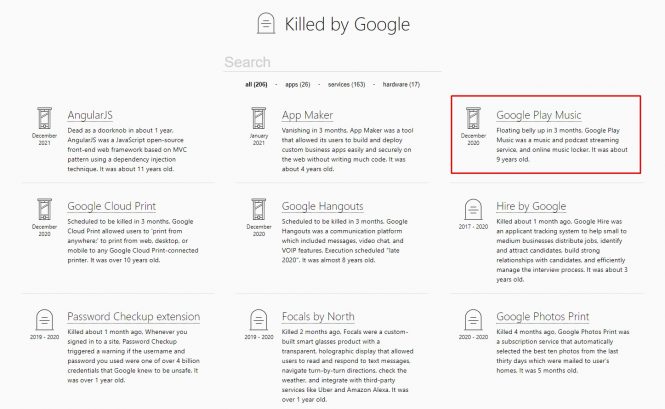 Serviciile și aplicațiile de mesagerie Google au devenit exemplul dominant. Cele mai aprinse discuții din ultima vreme au venit din rândul utilizatorilor Google Play Music cărora li se spune acum că nu mai pot cumpăra melodii. Magazinul Play Music și-a închis porțile pentru totdeauna.