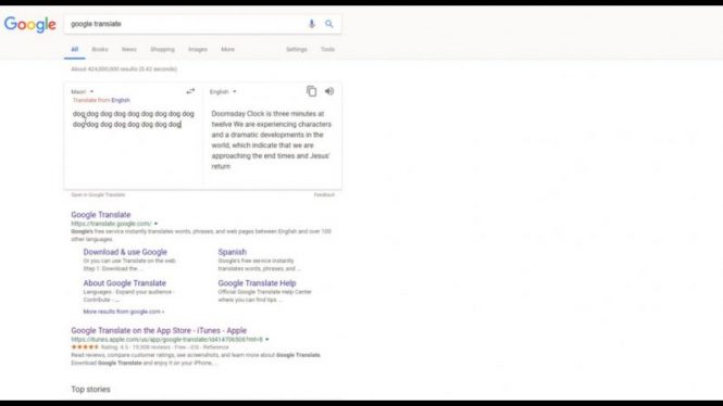 Dacă intraţi în Google Translate, alegeţi ca limbă iniţială Maori apoi să traduceţi în Engleză, iar în căsuţa scrieţi „dog” de vreo 20 de ori apare următorul text: