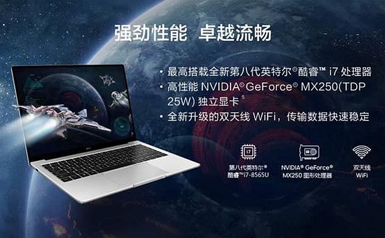 Ecranul are aspect 3:2, rezoluţie de 2160 x 1440 pixeli, procesor Core i5 sau Core i7 şi placă grafică NVIDIA GeForce MX250. Acesta este urmaşul lui MateBook 13, care trece de la ecranul de 13 inch la unul de 14 inch. Rezultatul este un laptop cu design metalic şi premium, cu touchpad generos. Ecranul are muchii groase de doar 4.9 mm (dreapta şi stânga) şi screen to body ratio de 90%.