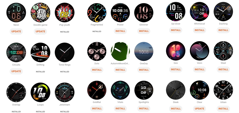 Din aplicația Health disponibilă pe telefon vă puteți sincroniza datele adunate din antrenamentele fitness, dar și adăuga melodii sau schimba tema-ceas. Sunt disponibile o mulțime de astfel de teme după cum vedeți și în galeria de mai jos. Cât despre interacțiune, printr-un gest swipe de sus în jos ajungeți în centrul de notificări.