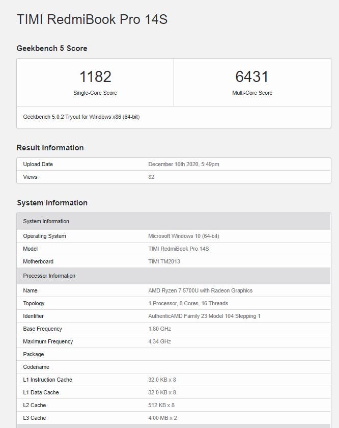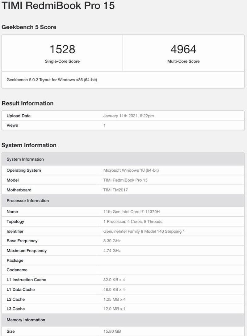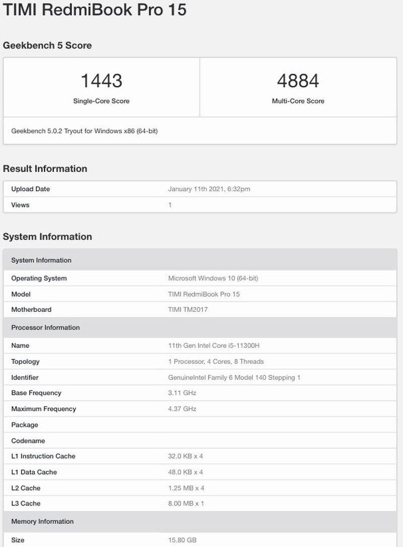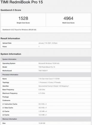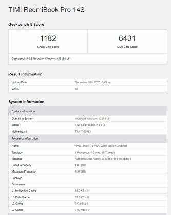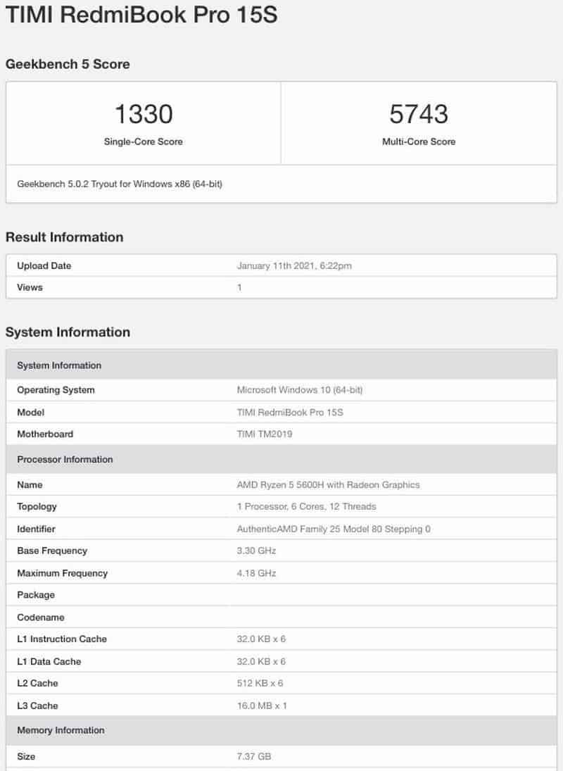 Din imaginile teaser oferite de companie mai știm că acesta va avea o mufă USB C și un port HDMI. RedmiBook Pro 15 și-a făcut recent apariția și în Geekbench, dezvăluind 16GB de memorie RAM. Totodată, de această dată vom vedea și o cameră web integrată pe acesta. În trecut, Xiaomi nu includea camere pe modelele sale pentru a reduce marginile ecranului la minim. Totuși, având în vedere faptul că mulți lucrează sau învață de acasă, compania a început să adauge și camere web pe ultimele modele. Aparent, modelul RedmiBook Pro 15S va primi variante cu CPU Ryzen 5 5600H și Ryzen 7 5800H. Iată și testele benchmark: