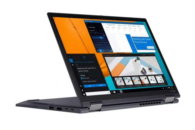 Acesta este un convertibil cu ecran rotativ, care cântăreşte 1.2 kilograme şi vine cu o balama cu rotire la 360 de grade, care îţi permite să foloseşti computerul în mod laptop, tabletă, cort sau stand. Avem parte de un corp din fibră de carbon, 2 porturi Thunderbolt, HDMI 2.0, port USB 3.2, jack audio şi WiFi 6, dar şi NFC şi 4G. Bateria este de 52.8 Wh.