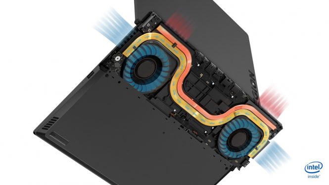 Avem şi ventilatoare cu multiple palete de lungimi diferite. Notebookurile acestea sunt cu aproximativ 10% mai reci decât predecesorii lor, iar fluxul de aer este cu 16% mai bun acum. E clar ce vrea Lenovo să facă aici şi anume să ne propună rivali pentru laptopurile Alienware. Avem la bord şi plăci grafice NVIDIA GeForce GTX 1050 TI şi până la 16 GB RAM.