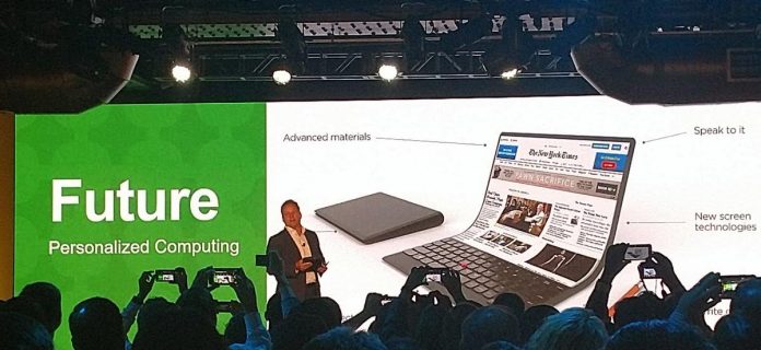 Deşi Samsung şi LG lucrează de ani buni la tablete şi telefoane flexibile, cumva Lenovo le-a luat faţa din nou. Anul trecut prezentau un smartphone care se îndoia şi devenea o brăţară, iar acum ne prezintă un PC flexibil (laptop) şi fără vreo balama implicată.