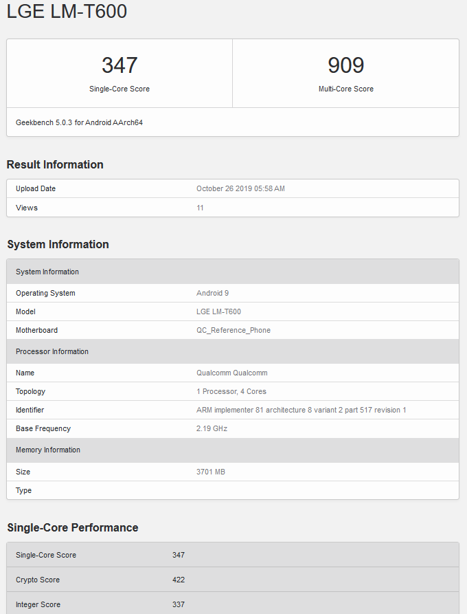 După cum aflați încă din titlu, tableta tocmai ce și-a făcut apariția în cadrul testului benchmark GeekBench. Apare aici menționată sub numele de cod LGE LM-600 și din câte putem observa, scorul obținut dezvăluie un device mai degrabă din zona mid-range ca performanță.