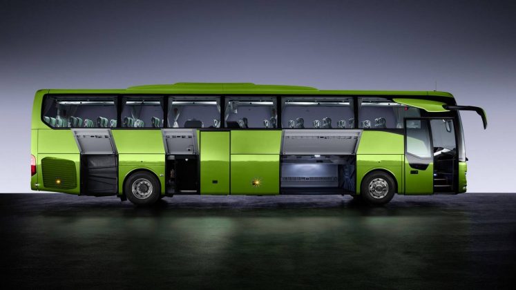 Pe lista de dotări mai există și sistemul de asistare la frânarea de urgență și aflăm că la nivel de motorizare acest autocar vine cu o unitate turbo diesel cu 6 cilindri în linie – motor capabil să dezvolte un cuplu de 2200 Nm și o herghelie de 456 cai putere.