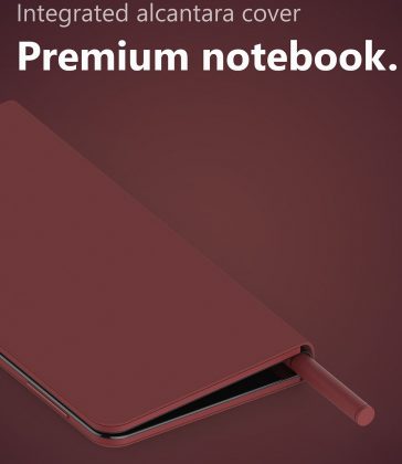 După cum puteți vedea în imagini, dispozitivul de aici este foarte subțire în ciuda tehnologie adoptate. Avem și un panou frontal cu muchii foarte înguste în jurul ecranului și chiar un stylus dedicat. Sunt reprezentate câteva variante de culoare și o husă specială din piele Alcantara.