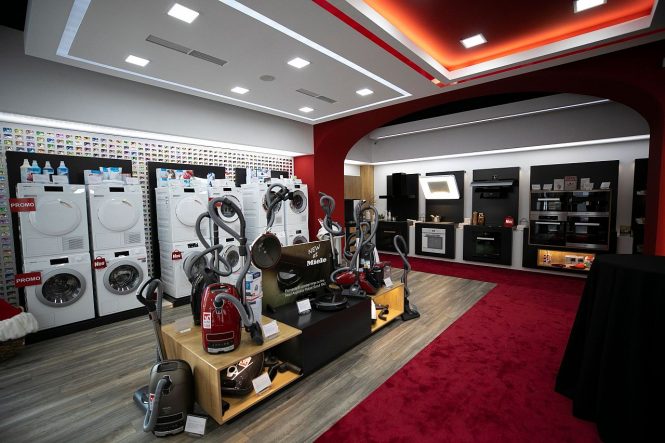 Într-o astfel de reprezentanţă puteţi vedea la treabă toate electrocasnicele premium de generaţie nouă. Veţi avea şi experienţe hands on cu ele, dacă doriţi. Pe lista de echipamente şi accesorii Miele se află maşini de spălat vase şi rufe, aspiratoare, frigidere şi hote. Puteţi vedea în acţiune şi sisteme de călcat, espressoare freestanding, dar există şi produse mai inedite, precum o marcă de cafea Miele sau detergenţi pentru maşini de spălat.