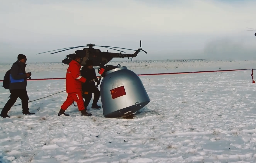 Oficialii chinezi au anunțat că robotul a terminat prelevarea celor 2 kg de probe cu o zi înainte de termen. Prima dată sonda a fost văzută prin intermediul camerelor infraroșu de pe elicoptere. Deși iarna a îngreunat căutările, echipele de recuperare au reușit să ajungă la aceasta. Probele urmează a fi trimise spre un laborator în scurt timp.
