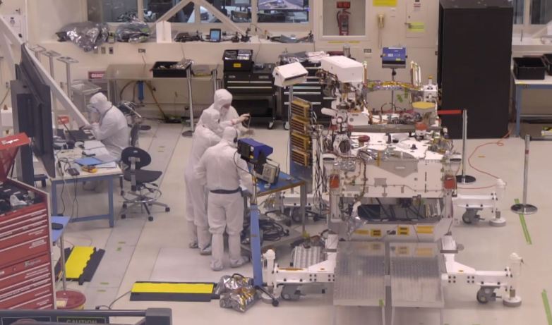 Cei care lucrează în camera cu roverul poartă costume speciale şi au gura şi ochii acoperiţi. Se evită astfel condens, transpiraţie, dar şi inhalarea de substanţe chimice periculoase. Camera era montată în Jet Propulsion Laboratory, acolo unde inginerii montează componente pe rover şi le verifică pe fiecare. Stream-ul se numeşte „Seeing 2020” şi ne oferă doar feed video, nu şi audio.