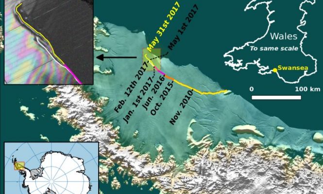Ca punct orientativ, Wales are o suprafaţă de 20.779 km pătraţi. Zona aceea e vitală, pentru că desprinderea icebergului lasă restul secţiunii expus pentru viitoare desprinderi. Atunci când se desprinde gheţarul, el va pierde cam 10% din suprafaţă şi va schimba complet topografia regiunii. Larsen C îi urmează exemplul lui Larsen B, care s-a dezintegrat în 2002, după o desprindere similară.