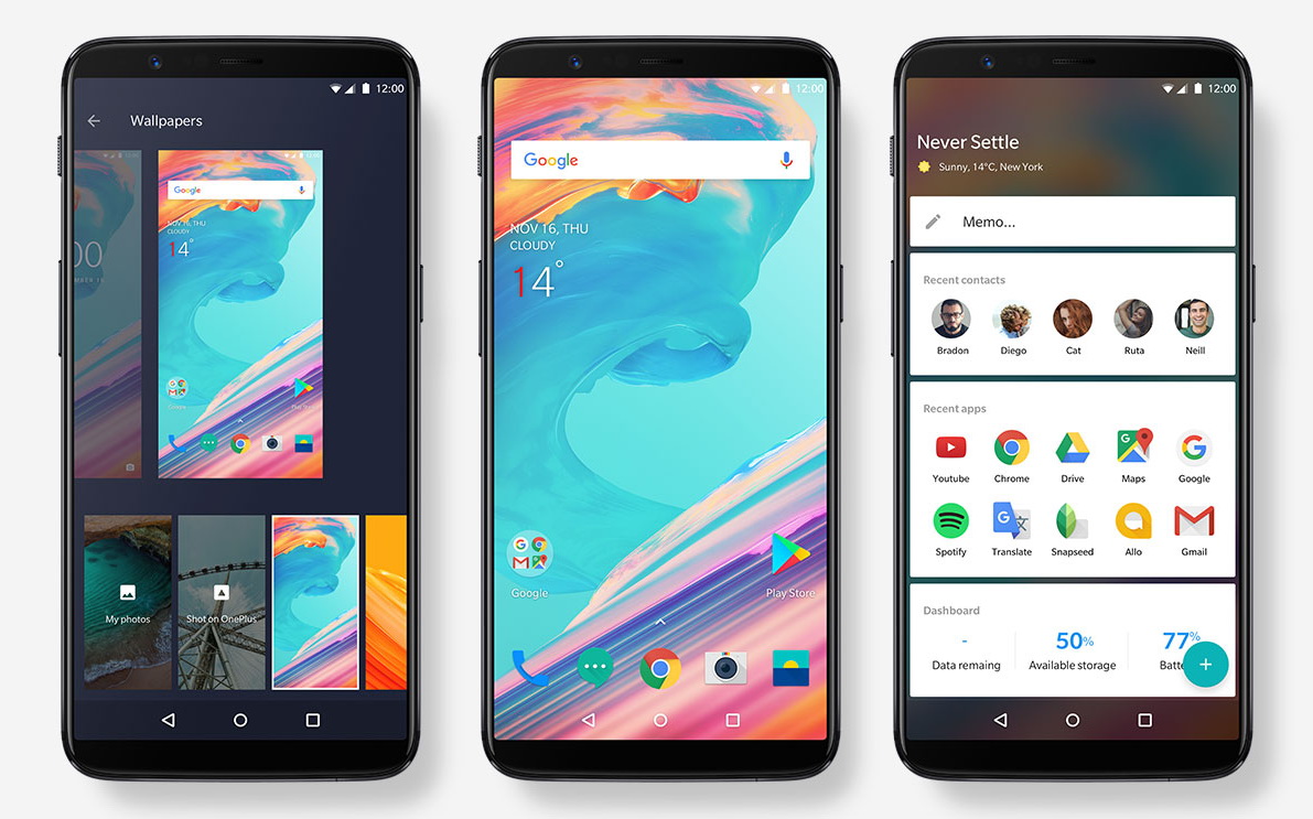 Aceasta identifică 100 puncte cheie pentru a autentifica utilizatorul. OnePlus 5T rulează OyxgenOS într-o versiune cu look nou, iconuri noi şi opţiuni proaspete de personalizare. Are o galerie modificată, cu hartă integrată şi permite rularea de două aplicaţii de acelaşi tip simultan, prin Parallel Apps. Avem şi un Dark Mode, Night Mode, Reading Mode sau Gaming Mode.