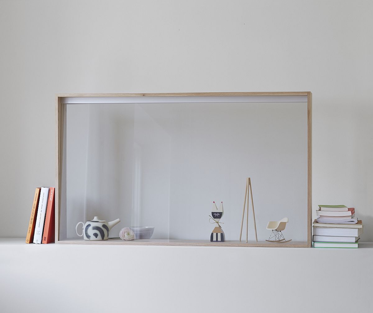 Ecranul OLED transparent creează imaginea unui cabinet din sticlă, care include şi un cadru de lemn, care susţine panoul din sticlă. Această piesă de mobilier se va potrivi cu orice spaţiu contemporan de locuit şi este uşor de integrat în orice încăpere. Panasonic şi Vitra au colaborat pentru a dezvolta ecranul OLED transparent de aici.
