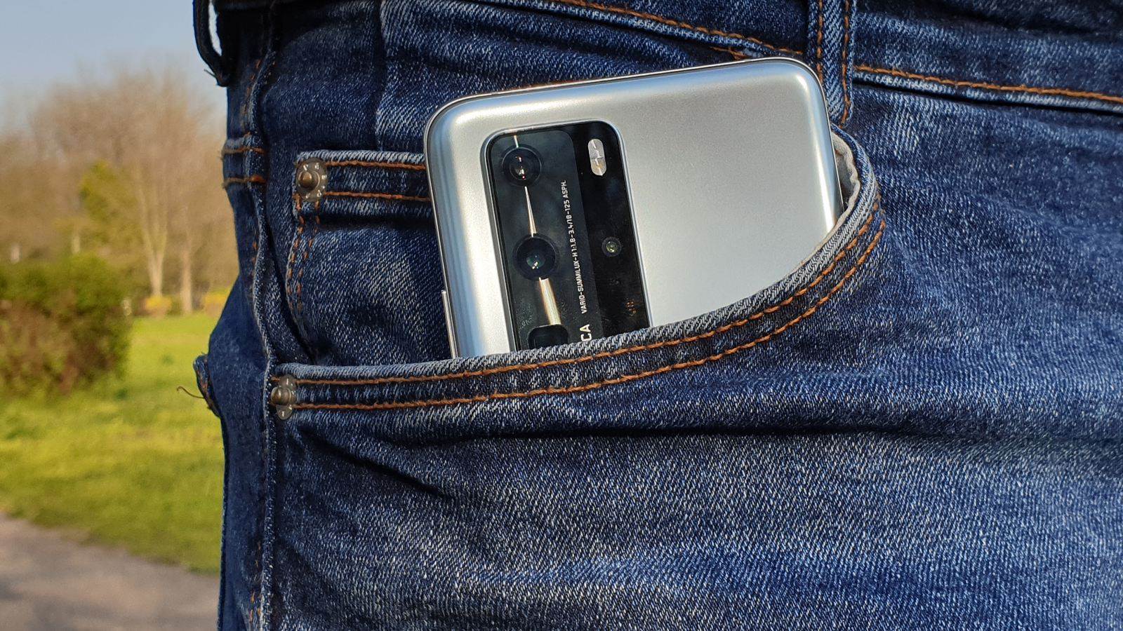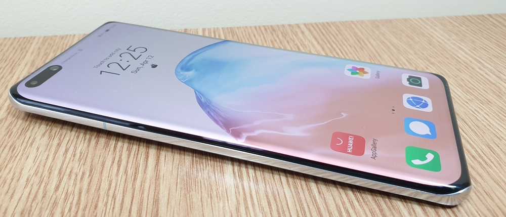 Ecranul este ușor curbat pe lateral dar și sus-jos, iar referitor la muchiile panoului frontal acestea sunt foarte înguste. Se contribuie astfel la o imersiune în vizionarea de conținut video. Huawei P40 Pro vine cu o carcasă unibody și include la mijloc o ramă metalică ce strălucește în bătaia soarelui.