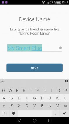 După descărcarea aplicației am pornit în procesul de setare ce nu a durat mai mult de 3-4 minute. Am conectat această priză la sursa de curent și din aplicație am urmat pașii de instalare care au fost îndepliniți cu succes în timp util. Veți putea adăuga un nume personalizat prizei, o iconiță și totodată este nevoie să o conectați la rețeaua locală Wi-Fi.