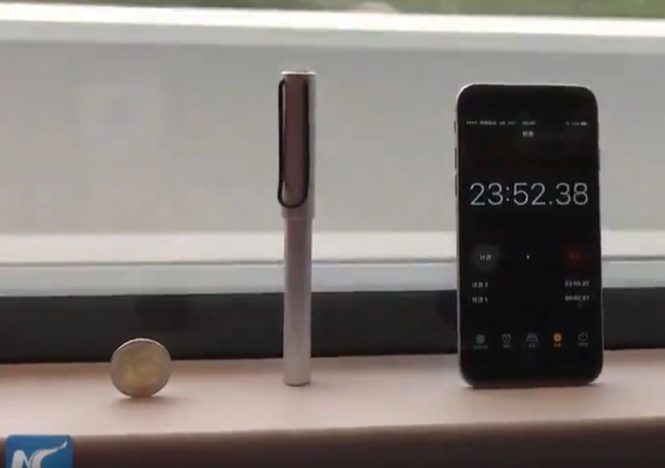Watch how long a two-euro coin can balance on Fuxing train traveling at 350 kph, on #HighSpeedRail linking Beijing with Shanghai pic.twitter.com/S9nE9Fplgc