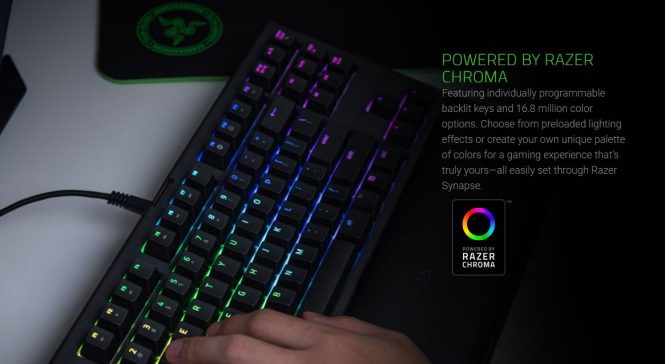 Butoanele se vor ilumina cu peste 16.8 milioane de nuanţe posibile, toate personalizabile cu ajutorul software-ului Razer Synapse. Există şi o zonă specială pentru odihnit încheietura, detaşabilă magnetic. Tastatura costă 139.99 dolari şi o găsiţi direct la Razer.