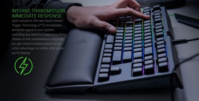 Apăsarea de hotkey-uri şi sute de comenzi pe minut, toate trebuie administrate de acest accesoriu. Razer BlackWidow Tournament Edition V2 are 3 tipuri de butoane mecanice, galbene, portocalii şi verzi, care permit utilizatorilor să aleagă între butoane tactile clicky sau silenţioase. Razer se laudă cu o tehnologie „Instant Trigger” aici care oferă viteze peste medie şi zero delay între acţiunea gamerului şi răspunsul computerului.