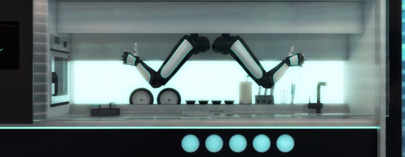 Ceea ce vedeţi în imaginile de mai jos este un soi de Master Chef robotizat, care include două braţe mecanice şi care va sosi în comerţ în 2017. Acest robot este destinat bucătăriilor high tech şi vine cu 2000 de reţete programate.