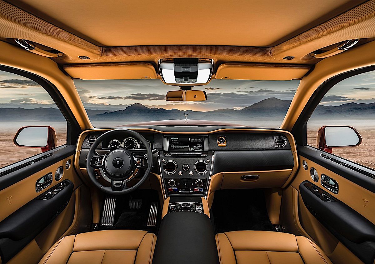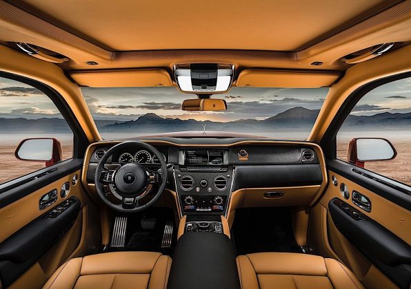 Cullinan oferă un volum de 560 de litri din spate, care poate creşte mai mult cu câteva mutări de rafturi. Pentru a permite un acces mai uşor al pasagerilor şi şoferului, acest SUV se poate cobora cu 4 cm atunci când deblocăm maşina. De îndată ce e apăsat butonul Start Cullinan se ridică la înălţimea normală. Bordul e plin de panouri digitale de instrumente şi avem şi un touchscreen central.