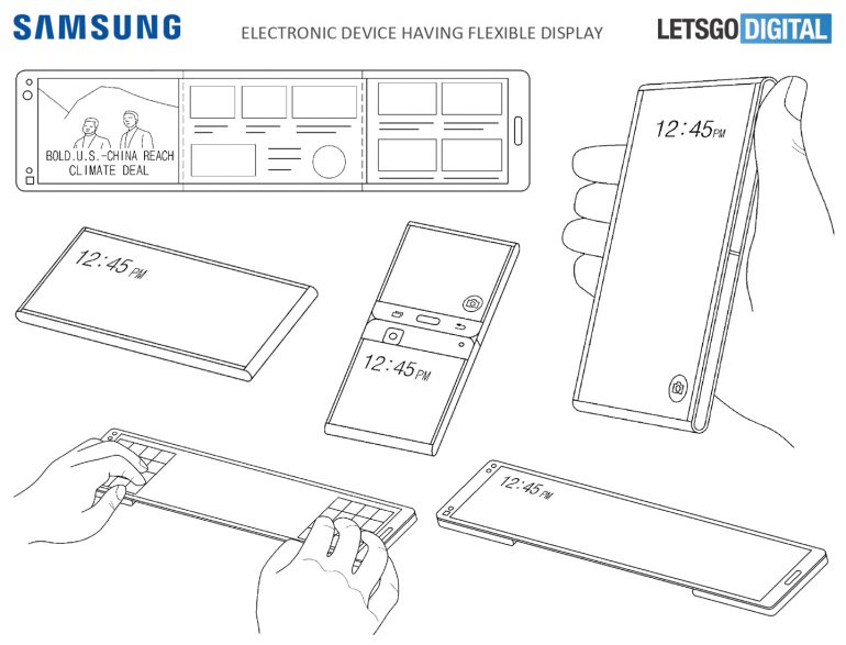 Brevetul iniţial provine din anul 2016 şi a fost înregistrat la USPTO şi WIPO, documentele menţionate prezentând un terminal cu ecran flexibil. Aprobarea a venit de abia în ultimele săptămâni. După cum vedem în schiţe acest smartphone are trei segmente, două înguste şi care se extind din corpul principal. Acele două margini pot fi îndoite în spate. Zona centrală ar putea fi transparentă sau să includă un panou E-Ink, care consumă mai puţină energie.