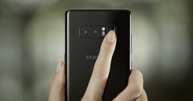 Tot la bord găsim un scanner de amprente plasat în spate, lângă camera duală, dar mai comod decât la Galaxy S8. E dublat de un scanner de iris, dacă vreţi extra securitate. Designul e similar cu al lui S8+, doar că parcă puţin mai îngust şi mai angular. Având în vedere diagonala uriaşă, pot spune că smartphone-ul stă chiar foarte bine în mână, iar îngustimea sa e cheia.