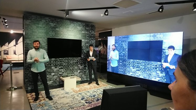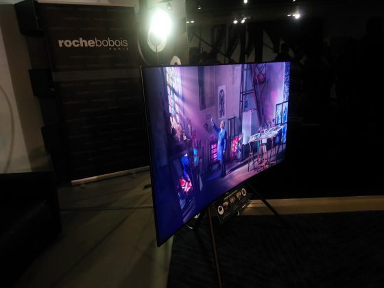Trecând peste şocul faptului că scaunele şi mesele de la Roche Bobois costa sute sau mii de euro am savurat faptul ca televizoarele au debutat cu o scenetă de teatru mut. Hai să îi zicem pantomimă, deşi atingerea televizorului a fost reală. Un cuplu, un el şi o ea au venit cu televizorul de la magazin şi au început să îl monteze. Diferenţa e că acum nu s-au certat cum fac toate cuplurile când montează ceva pentru că noul televizor are un sistem super intuitiv, ce îţi permite să îl pui direct pe perete, la o distanţă minimă de acesta şi fără probleme în a schimba unghiul şi înclinarea dacă nu sta drept.